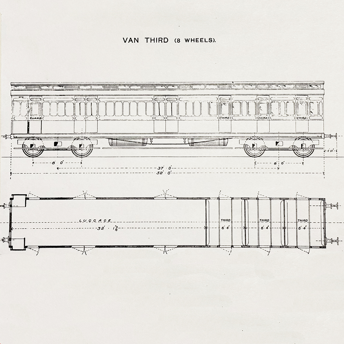 In 1896 the North Eastern Railway built their Diagram 18 52′ Van Third clerestory carriage with 3 compartments.